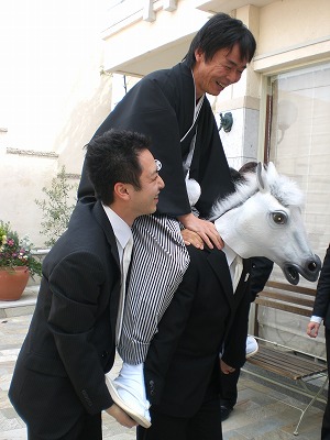 つよしさんは、なんと馬(ご友人)に乗って、時代劇風に入場!!軽やかにさとみさんをお迎えに行かれました。