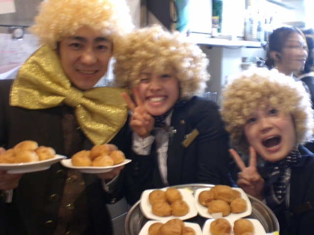 このゲームはこうじさんがどうしてもやりたい!と思っていたゲームです!ミヒマルのライヴのようにのりのりアフロ3人組が当たり入りのシュークリームをサーブしました!当たりの皆様には、おふたりが大好きなお取り寄せバームクーヘンのプレゼント!!