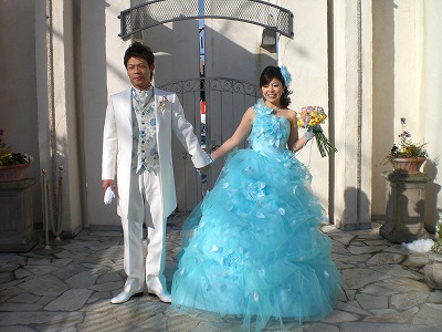 そして、お色直しは鮮やかな水色のドレスで入場!!