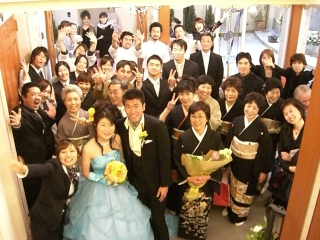 スタッフもおじゃまして全員でハイポーズ!“のりあきさん&あいさん おめでとーーーう!!!”