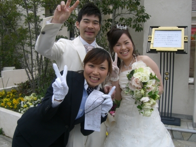 けんいちさん&えつこさんご結婚おめでとうございます!1年間頑張って準備してきたかいがありましたね♪天気だけが心配と言って、前日に「みんな晴女、晴男だから大丈夫だよ」と3人で話していましたね!みごと晴れて本当に奇跡が起きたんだと思いました!これもお2人が頑張ってきたからだと思います!