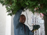 実は今日、ガーデンの木々たちに電飾を付けていただきましたv