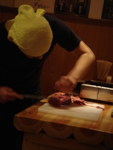 なんと、目の前で牛のタンをさばいてくれています!!!