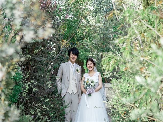 ウエディングドレス姿とタキシード姿を