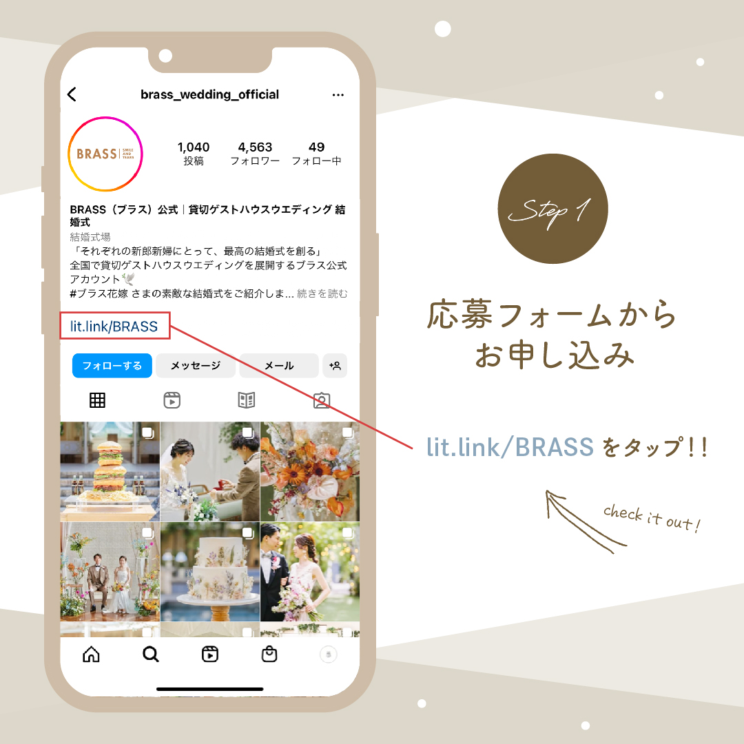 「@brass_wedding_official」を、2つセットでタグ付けして、