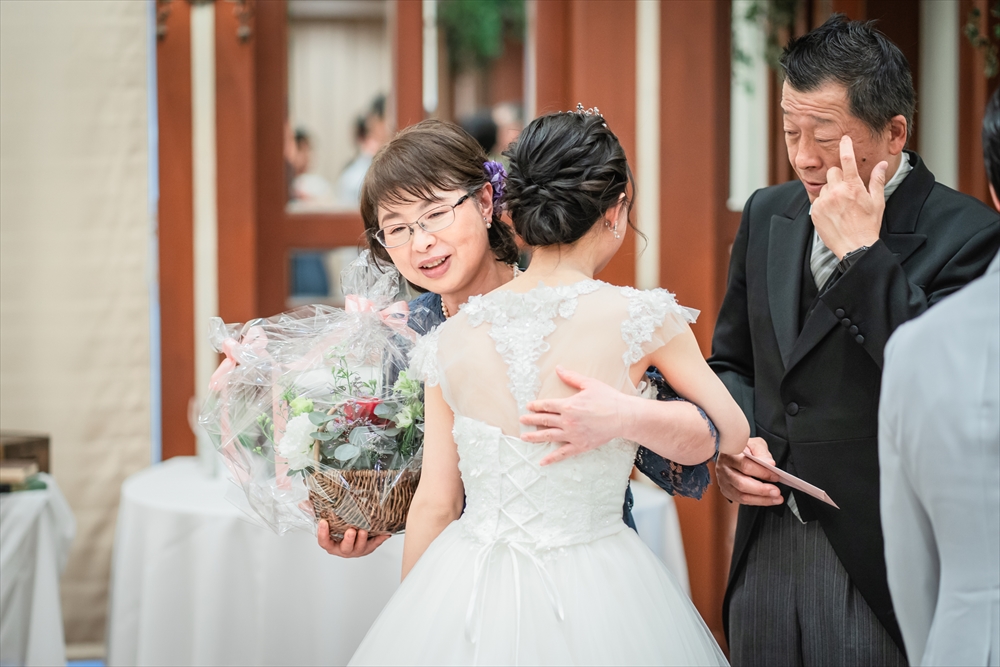 お母様と新婦様がハグをし昔の気持ちを思い出すような
