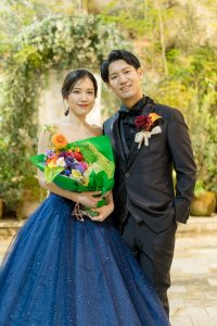 鮮やかなお色味でタキシードの色合いにぴったりですね!