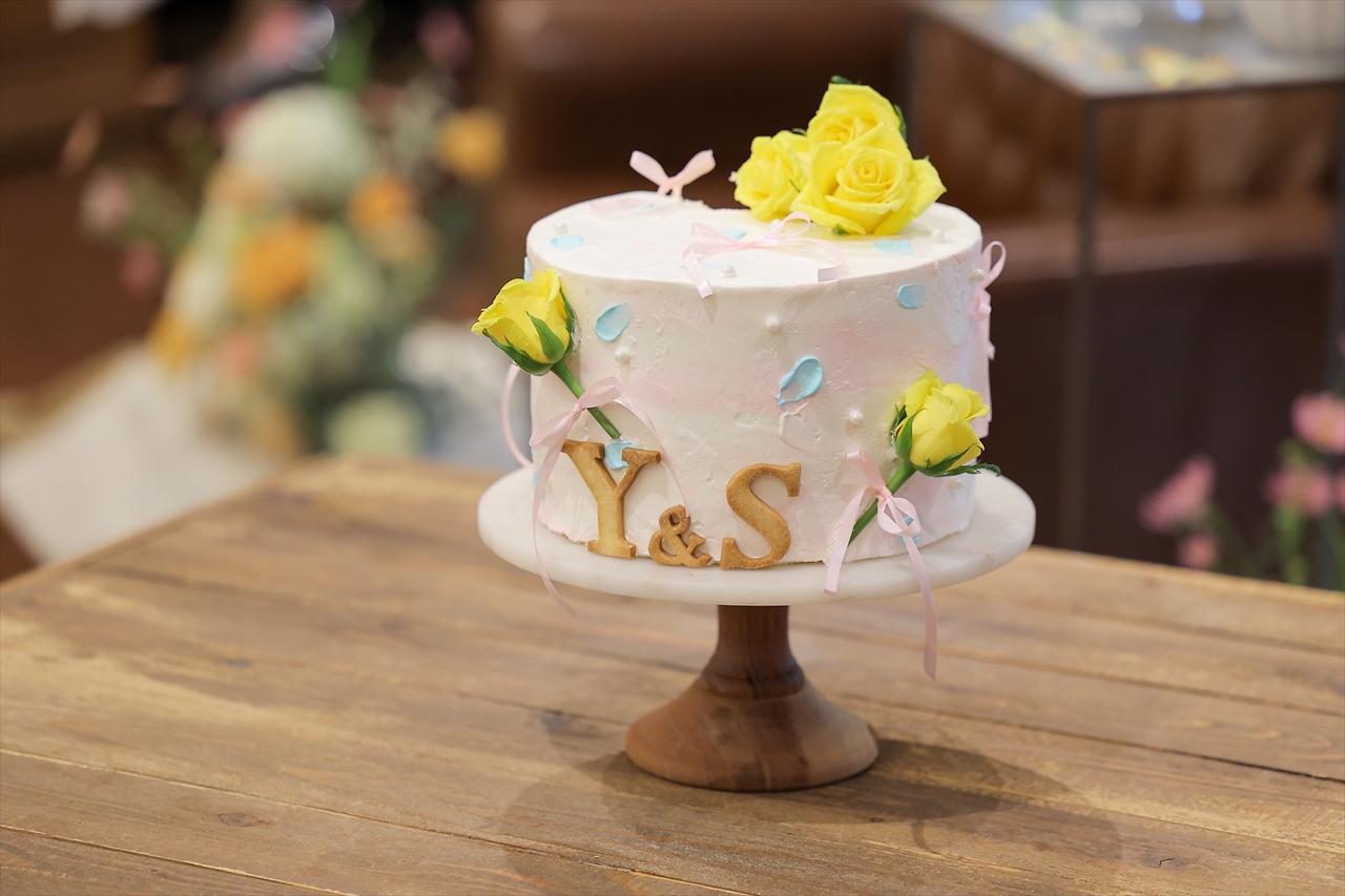 おふたりのケーキはしおりさんらしいお色味のケーキで