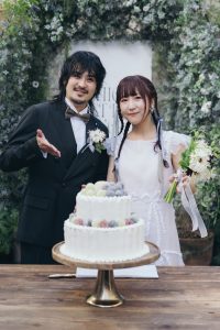 おふたりのこだわりのウェディングケーキにご入刀いただき