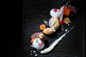 鮪 蟹 鮭 貝 ホワイトバルサミコのエキューム ハーブマルトセック