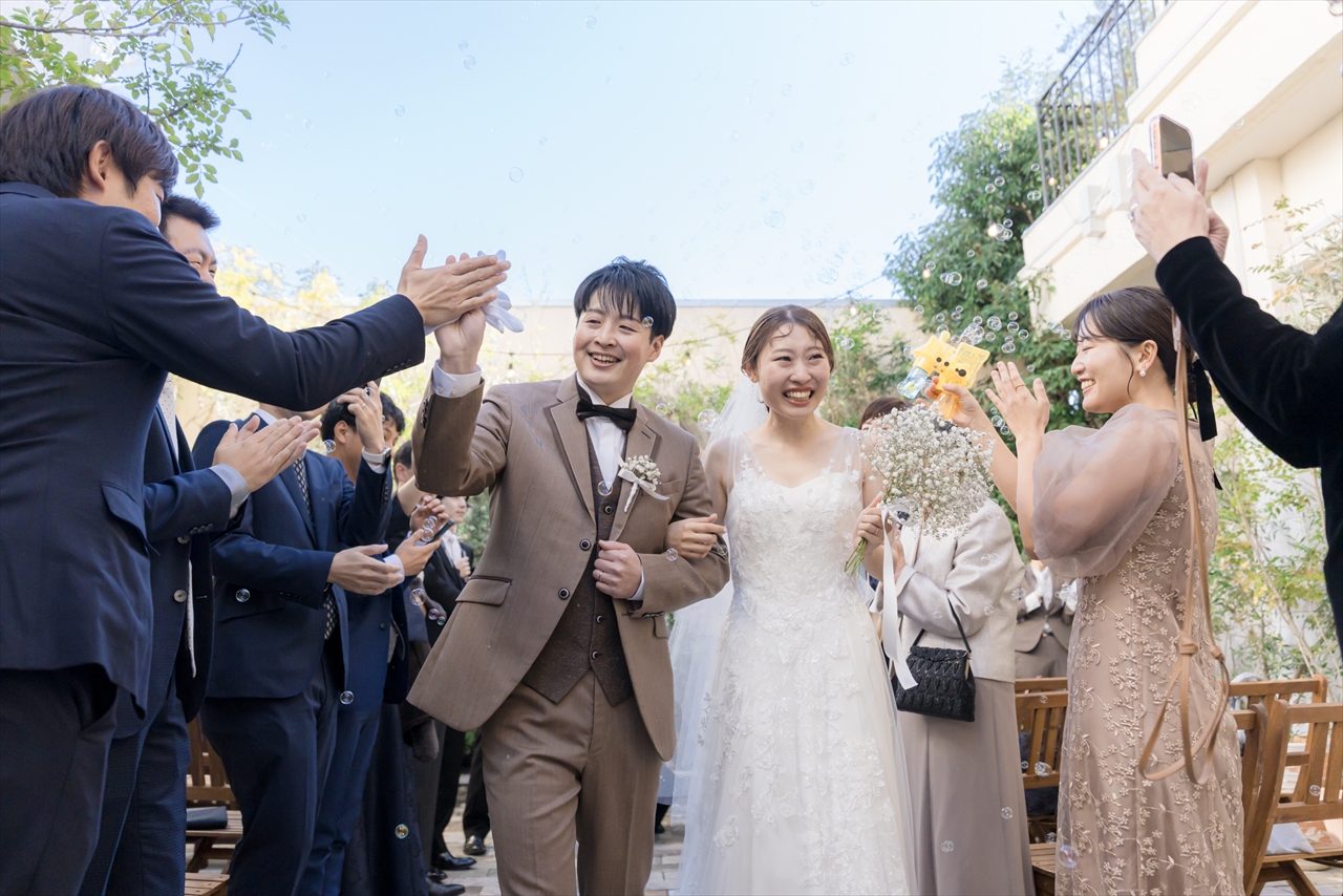 挙式を終えましたらルージュブランの中庭にて