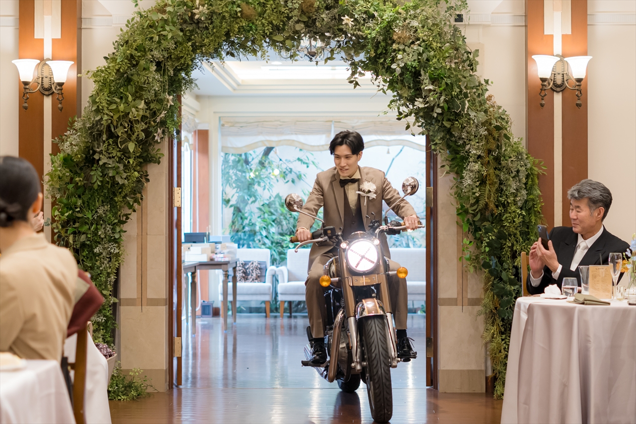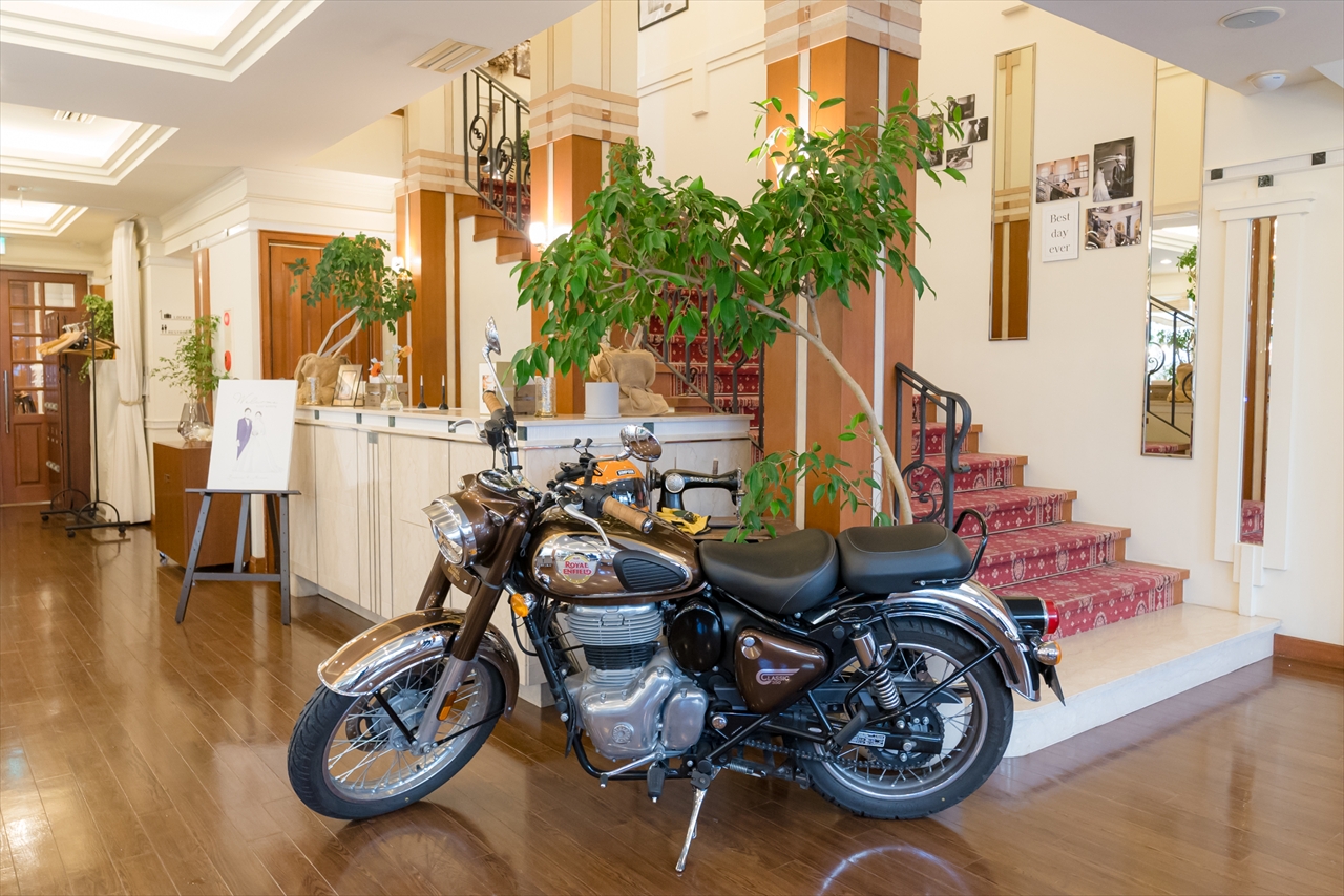 新郎様のバイクを待合室に飾りました!